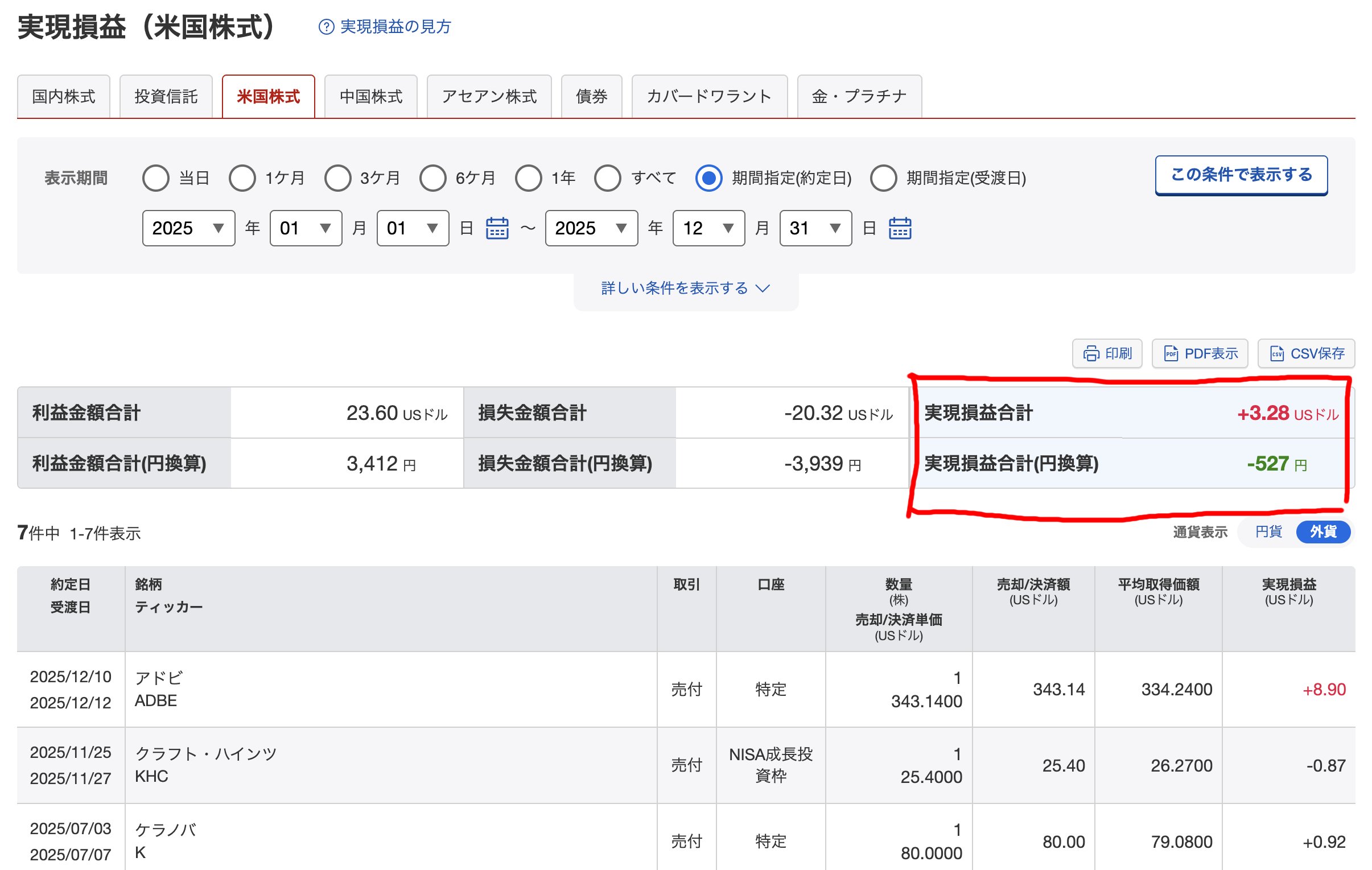 米国株自体は、あまり投資を行いませんでした。日本株の方が情報をキャッチしやすいし、2025年は値上がりしていたからです。
