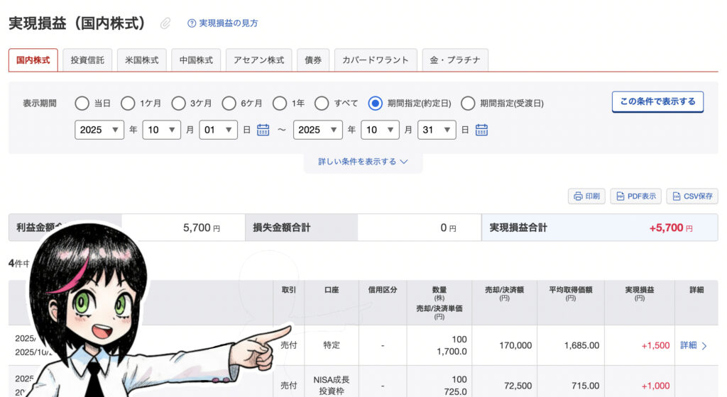 半月に満たない期間でのスイングトレードで、5700円の利益なので、決して高くはないけれど、悪くはない結果かなと思っています。